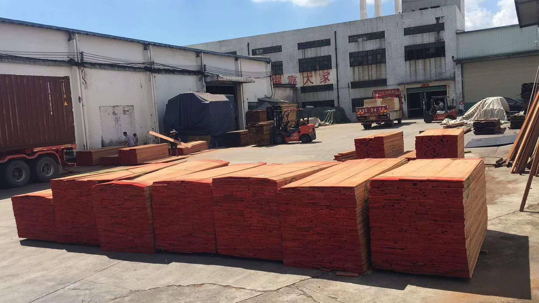 雨后卸貨海棠木,顏色統(tǒng)一,板面平整,適用于木門、家具、整屋定制等。