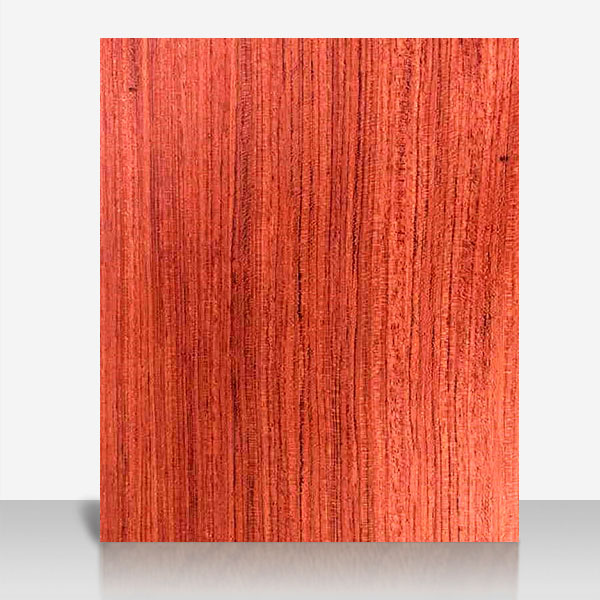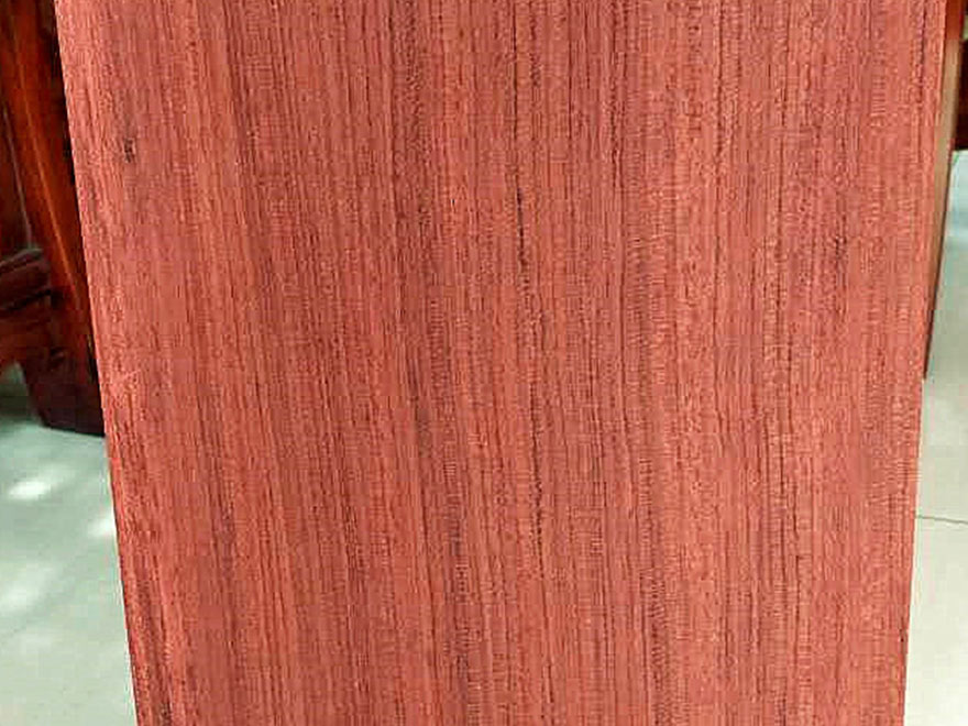 大喬木,高24~30M,直徑1.0M以上;具較大板根。本屬15種,分布于熱帶非洲,其中非洲有11種。只要從喀麥隆、赤道幾內(nèi)亞、加蓬進口,量較大。宏觀特征:散孔材。心材紅褐色,常具深色條紋,與邊材區(qū)別明顯。邊材奶油色,寬2~8cm。生長輪略明顯。界以輪界薄壁組織外,皮呈圓形小鱗片狀脫落,脫落后殘留卵圓形淺凹坑。樹皮受傷后會流出紅色膠質(zhì)。管孔稀少,不大。心材紅褐色帶紫色條紋。 木材材性具光澤;略具酸味。紋理直至略交錯;結(jié)構(gòu)細而均勻;質(zhì)量硬;強度高;干縮大。加工容易,刨切、車旋、握釘、油漆以及膠黏性能均好。耐腐,抗白蟻。干燥較快,無缺陷。氣干密度0.88~1.10g/cm3。 木材用途適用于豪華家具、刨切薄木、細木工、裝飾單板、地板、雕刻、生活器具等。