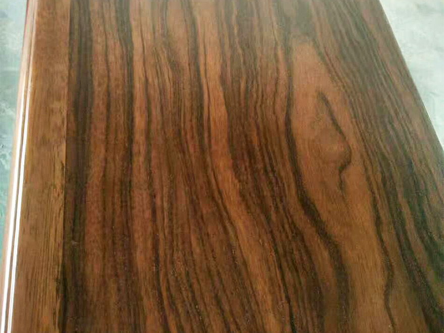 大喬木,高可達20~25m,直徑約1.0m;常具板根。本屬15種,非洲11種,主要分布于西非和中非。常從剛果及喀麥隆等地區(qū)進口,小批量。心邊材區(qū)別明顯。心材黃褐色至淺褐色,略帶灰色,具較致密的黑褐色同心圓狀細條紋。邊材灰黃白色,窄。生長輪略明顯,常界以輪界狀薄壁組織。樹皮:厚0.5~1.0cm,質(zhì)硬,易條塊剝離。外皮灰黃褐色;?。恍∑瑺蠲撀?。內(nèi)皮紫褐色;具細縱裂;韌皮纖維略發(fā)達,有韌性。 木材材性具光澤;有油性。 紋理直;結(jié)構(gòu)細而勻;質(zhì)重硬;強度高;干縮甚大。加工性能性能良好,熱處理后旋切質(zhì)量高;砂光、握釘、膠黏性能好。略耐腐。干燥速度中等,略有翹曲和開裂。氣干密度0.8g/cm3。 木材用途適用于家具細、木門、室內(nèi)裝潢、地板、工藝品、門窗、木線等。