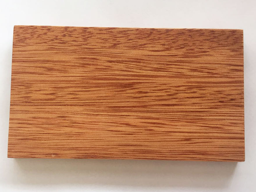 常綠喬木,高約40m,直徑0.6~1.5m,原木常見(jiàn)脆心。材表常留有淡黃色樹(shù)液。本屬約有100種,分布于東南亞、南太平洋、馬達(dá)加斯加和南美洲等地區(qū),主要從馬來(lái)西亞、巴布亞新幾內(nèi)亞、印尼進(jìn)口,量大。 樹(shù)皮:很厚,有時(shí)達(dá)4cm,不易剝離。外皮較硬;較厚;灰白色至灰褐色;具縱裂溝,較深較寬;易薄片狀剝落。內(nèi)皮紅棕色;韌皮纖維發(fā)達(dá);石細(xì)胞發(fā)達(dá);層狀排列。 橫截面:心邊材區(qū)別明顯。心材玫瑰紅色至紅褐色,具有褐色細(xì)條紋。邊材淺黃或淺灰褐色,窄。生長(zhǎng)輪略可見(jiàn)。 宏觀構(gòu)造:散孔材。管孔肉眼下明顯;略少,單管孔;呈斜列或徑列;含深色樹(shù)膠。軸向薄壁組織放大鏡下明顯,離管帶狀,斷續(xù)而稀疏,不均勻。木射線放大鏡下略見(jiàn),略密,甚窄。 木材材性光澤強(qiáng);花紋美麗。紋理交錯(cuò);導(dǎo)管粗獷,做產(chǎn)品立體感整體效果較強(qiáng),穩(wěn)定性中等;握釘力強(qiáng),結(jié)構(gòu)粗;重量和強(qiáng)度中等;硬度略高;干縮大。鋸、刨容易,易起毛和撕裂;油漆、拋光和膠黏性能良好;略難釘釘;略耐腐。干燥宜慢,易開(kāi)裂、翹曲。 木材用途一般適用于門(mén)窗、家具、工藝品、木門(mén)等。